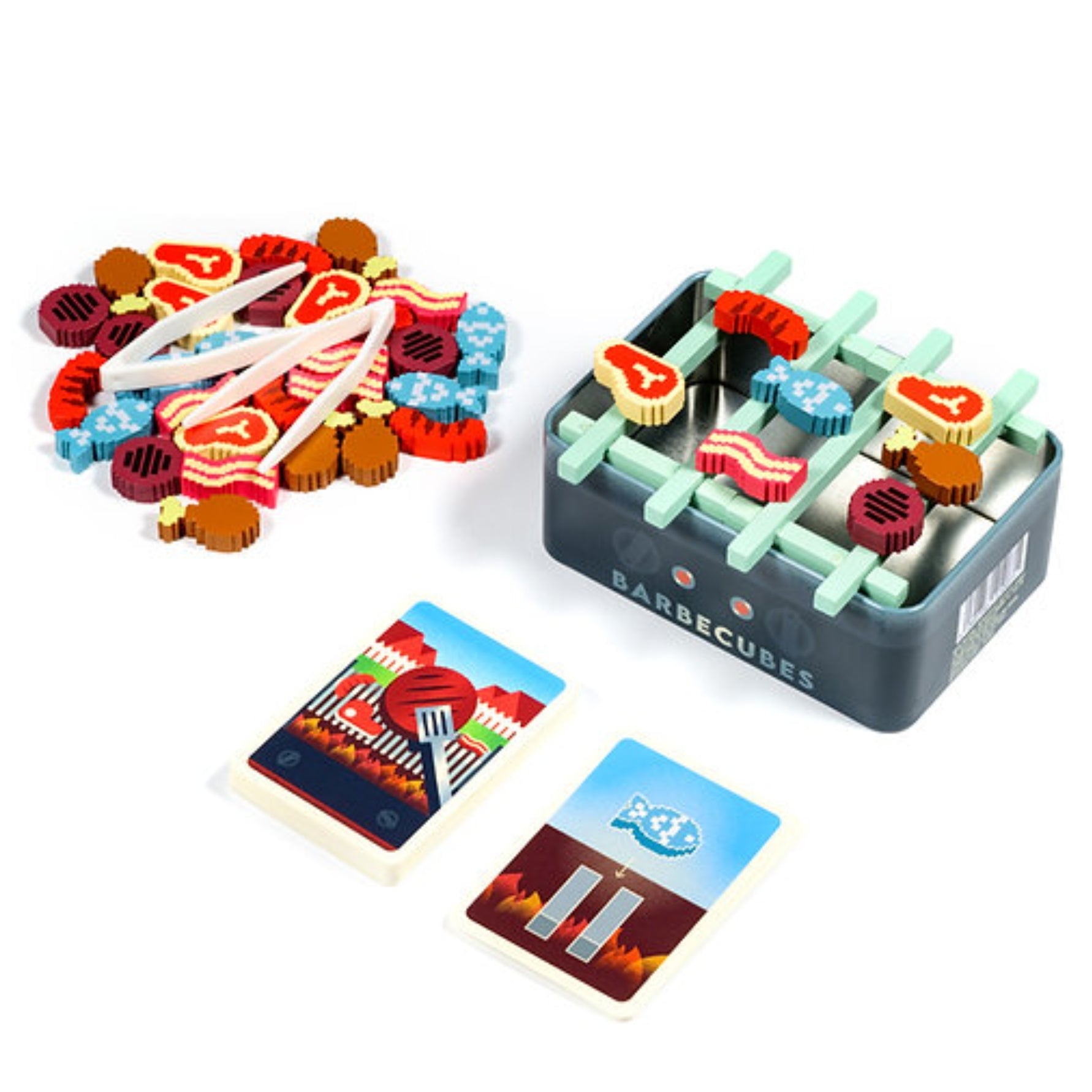 Barbecubes es un juego de mesa delicioso en todos los sentidos.Este es un juego de destreza, los jugadores compiten por armar la mejor parrillada posible con los ingredientes más sabrosos… ¡antes de que se quemen! Lanza, apila y selecciona cuidadosamente los cubos con carnes, tocino y pescado, mientras gestionas tus movimientos y observas a tus oponentes.