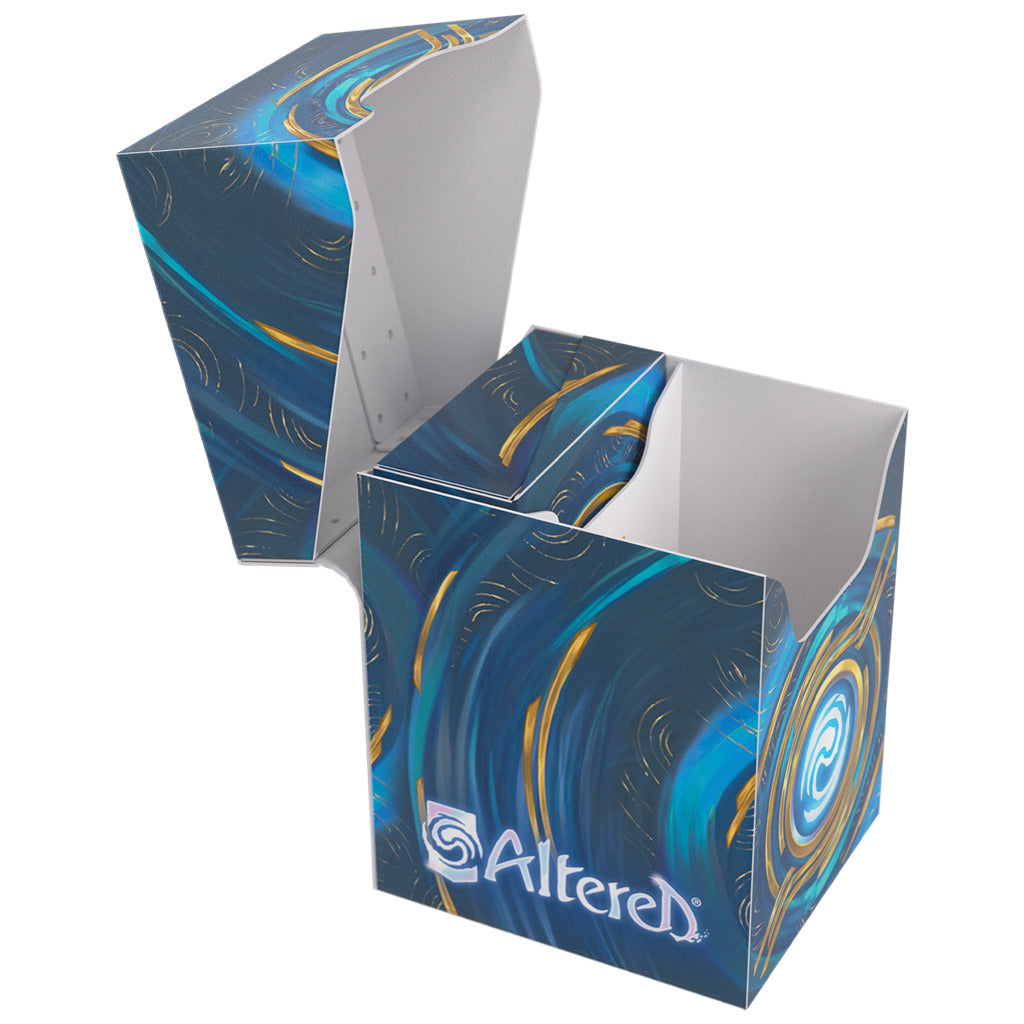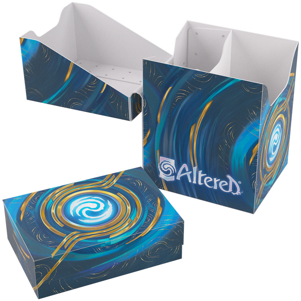 La caja Expedition Soft Box de Altered® es la solución casual todo en uno para los fans de este juego de cartas coleccionables tan esperado. Esta caja está impresa a todo color con diseños oficiales y además tiene muchas características ingeniosas. Sirve para guardar un mazo completo con doble funda y además incluye una caja para fichas innovadora que tiene un mecanismo de cierre inteligente para que las fichas no se salgan, incluso si se saca la caja. Una vez abierta, la tapa se queda así para que puedas acceder fácilmente al contenido durante las partidas.