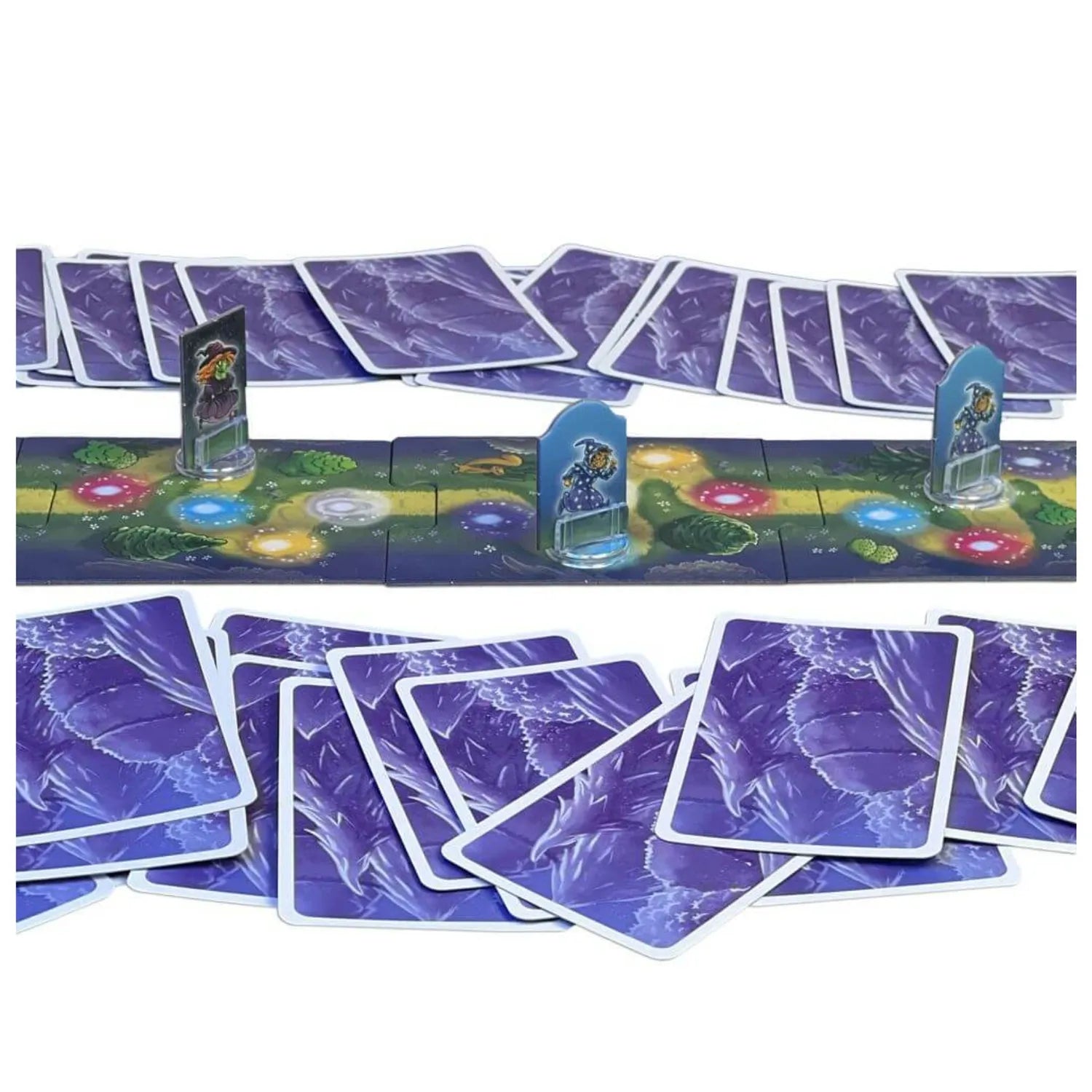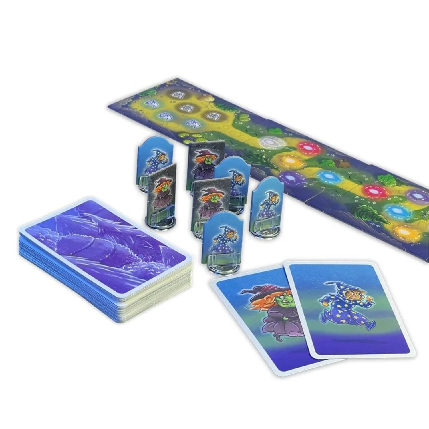 Con una mecánica de gestión de mano y elecciones tácticas, los jugadores deberán trabajar en equipo (¡o competir!) para avanzar, esquivar obstáculos y asegurarse de que los cristales mágicos no caigan en manos equivocadas. ¿Podréis llegar antes que las brujas?
