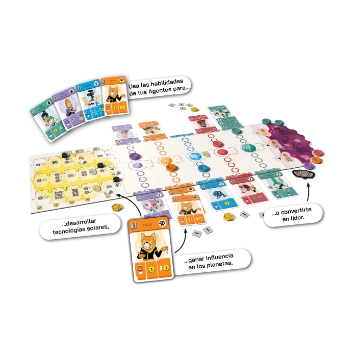 En cada partida de Zenith, los jugadores compiten en una intensa mecánica de tira y afloja. Utiliza la diplomacia, la tecnología y el poder militar para obtener discos de control sobre los planetas. El Zenithium es la clave: con él podrás desarrollar tecnologías solares y ganar influencia en el sistema.